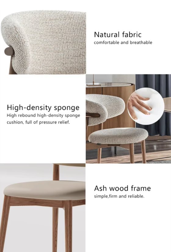 Custom Modern Nordic Style Restaurant Family Furniture Linen Upholstery Luxury Solid Wooden Backrest Side Dining Chair